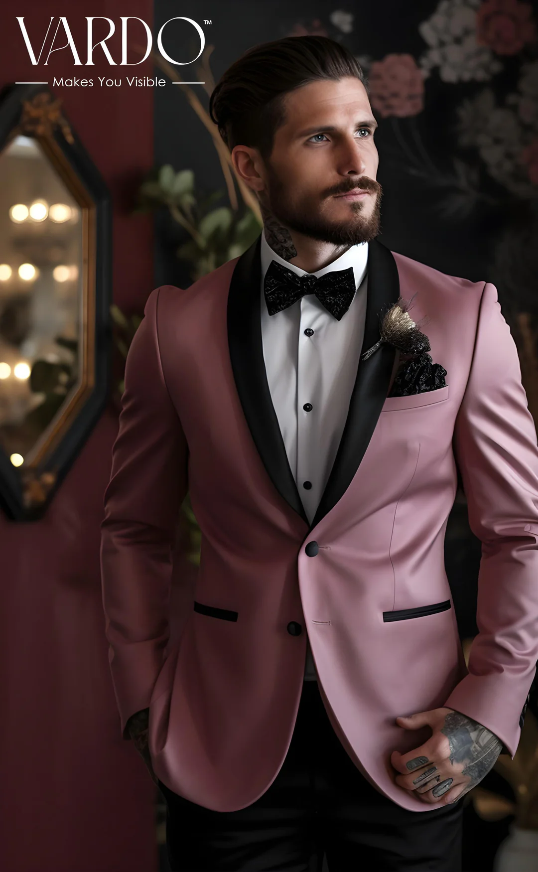 Make a statement with our Dusty Rose Tuxedo Suit – the epitome of style and grace.