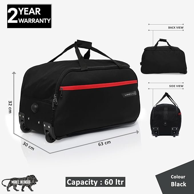 • The Lino wheel Duffle Bag from Lavie Sport is a voluminous yet lightweight duffle bag. Made of high quality and durable materials, it provides the same function as a large-sized suitcase. Perfect expedition duffle for weekend getaways.